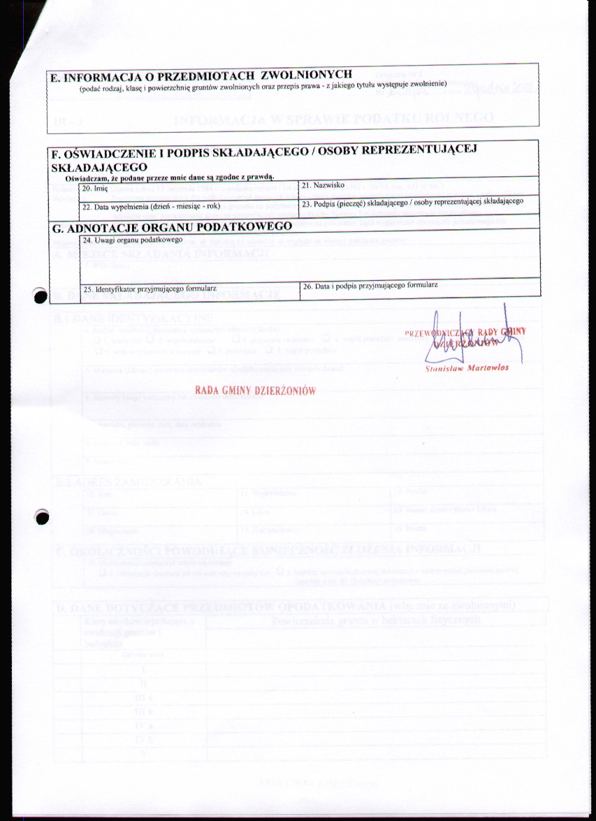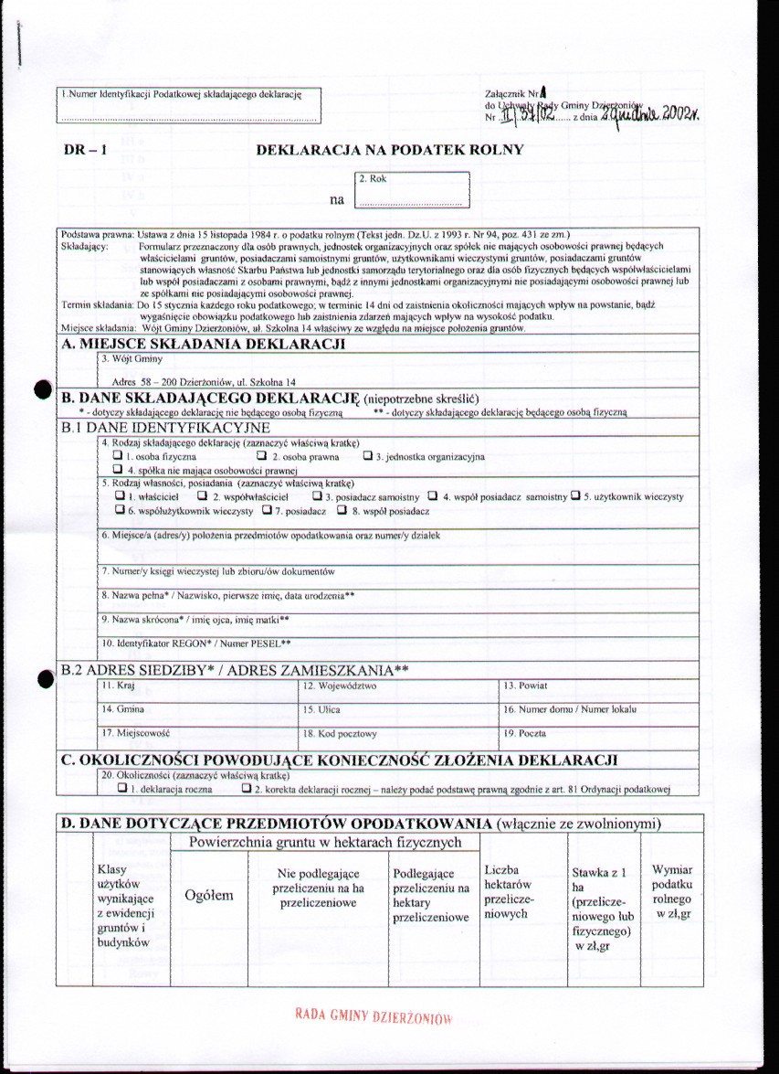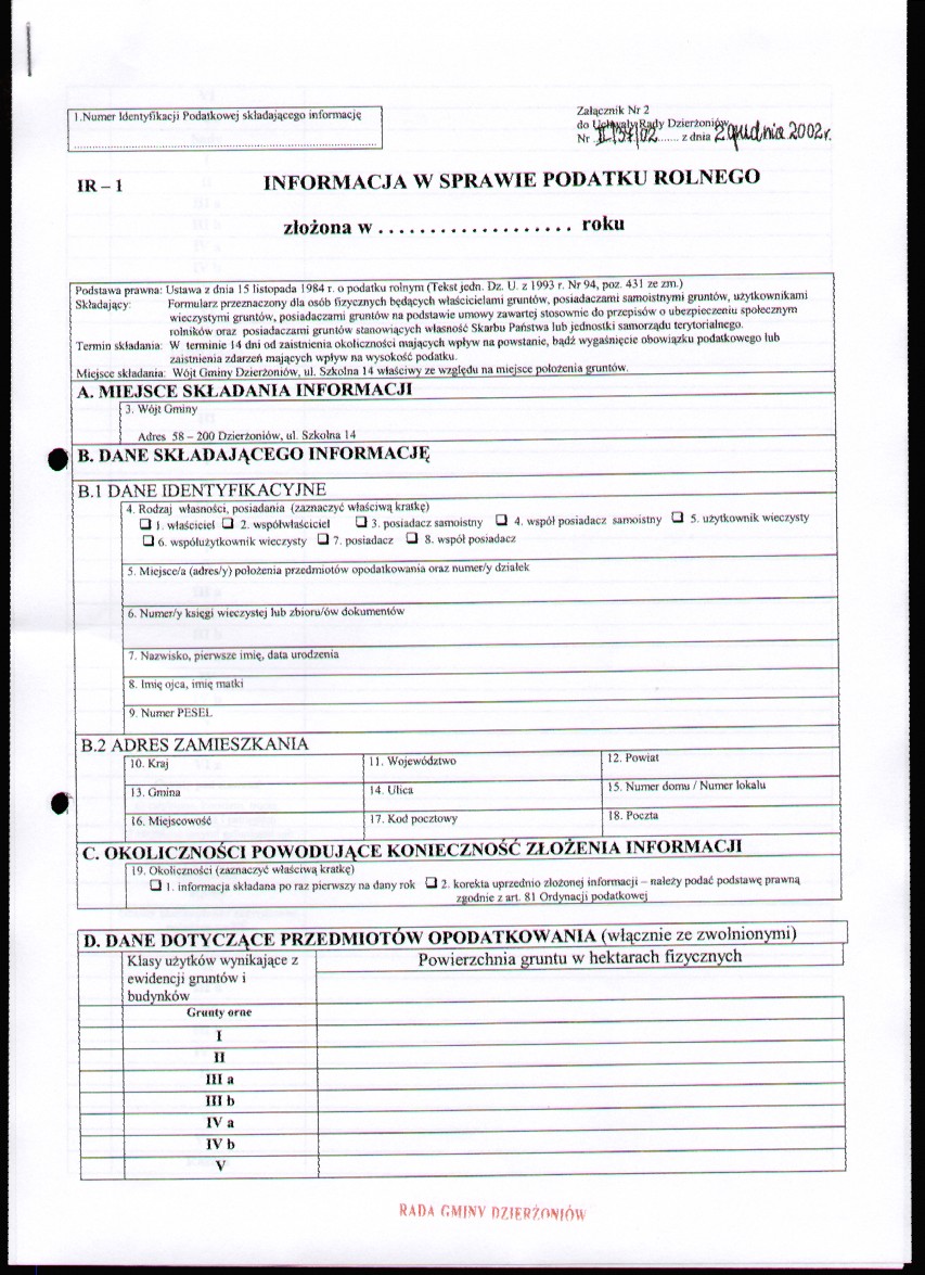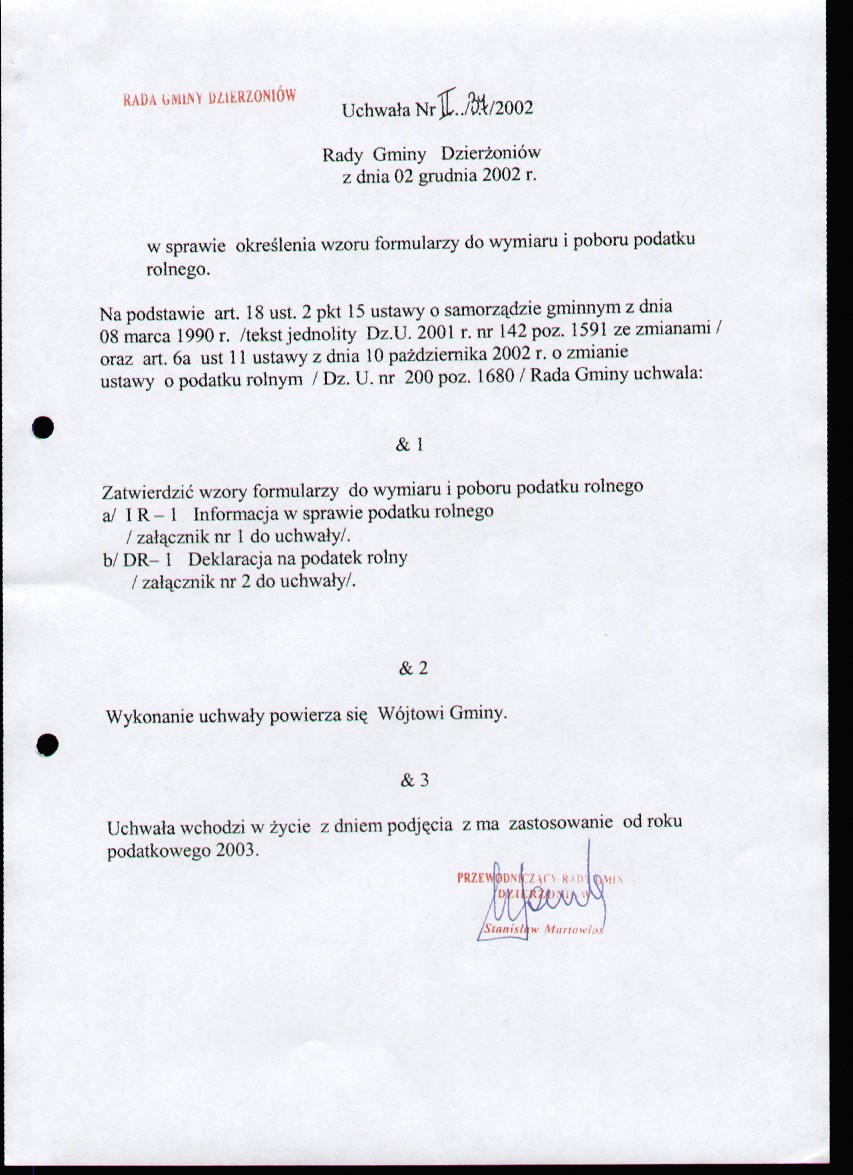 Uchwała Nr II/37/2002 w sprawie określenia wzoru formularzy do wymiaru i poboru podatku rolnego