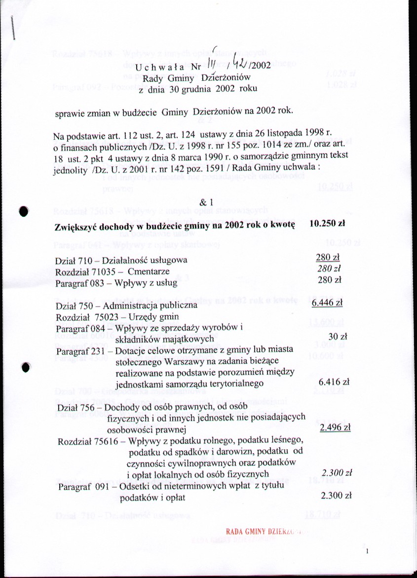 Uchwała Nr III/42/2002 w sprawie zmian w budżecie Gminy Dzierżoniów na 2002 rok