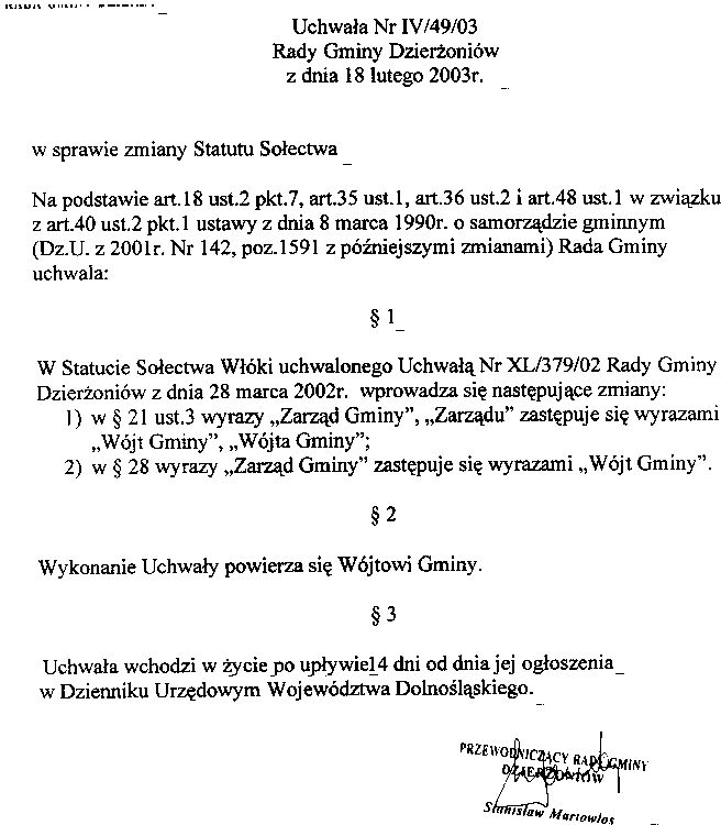 Uchwała Nr IV/49/2003 w sprawie zmiany Statutu Sołectwa Włóki