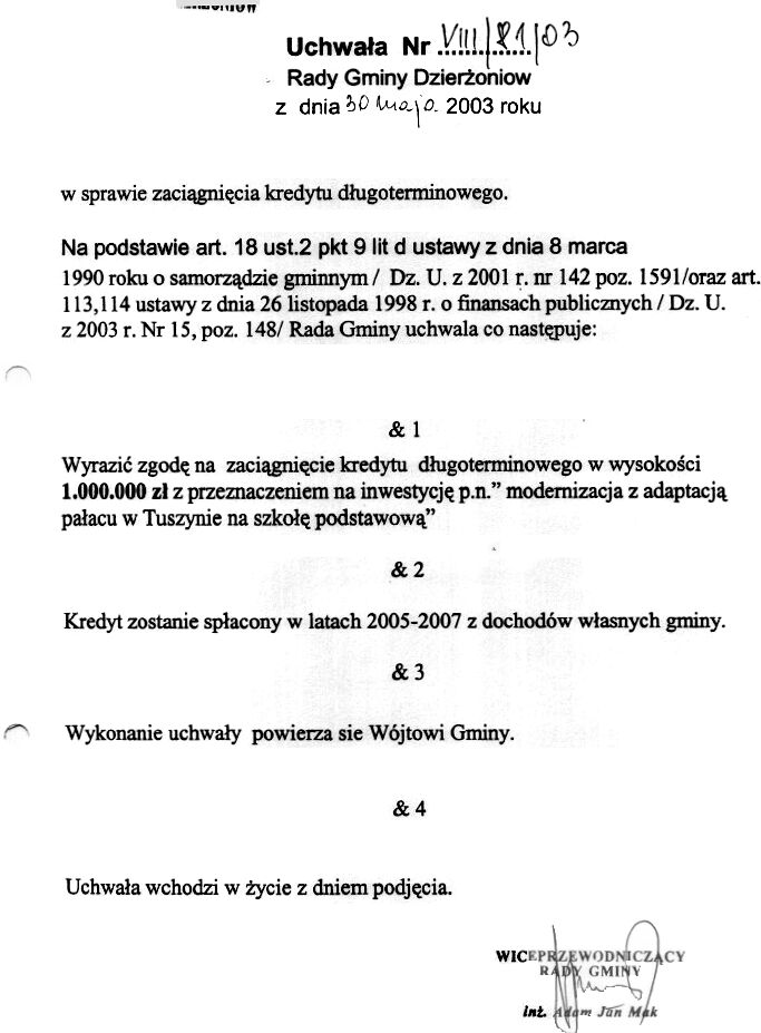 Uchwała Nr VIII/81/2003 w sprawie zaciągnięcia kredytu długoterminowego
