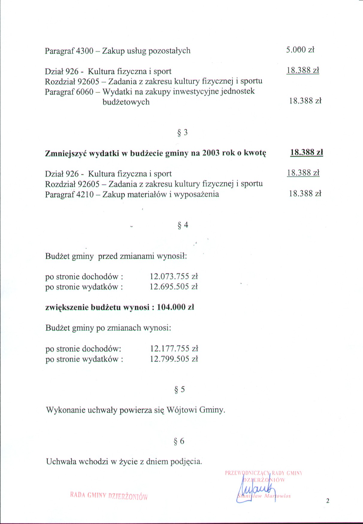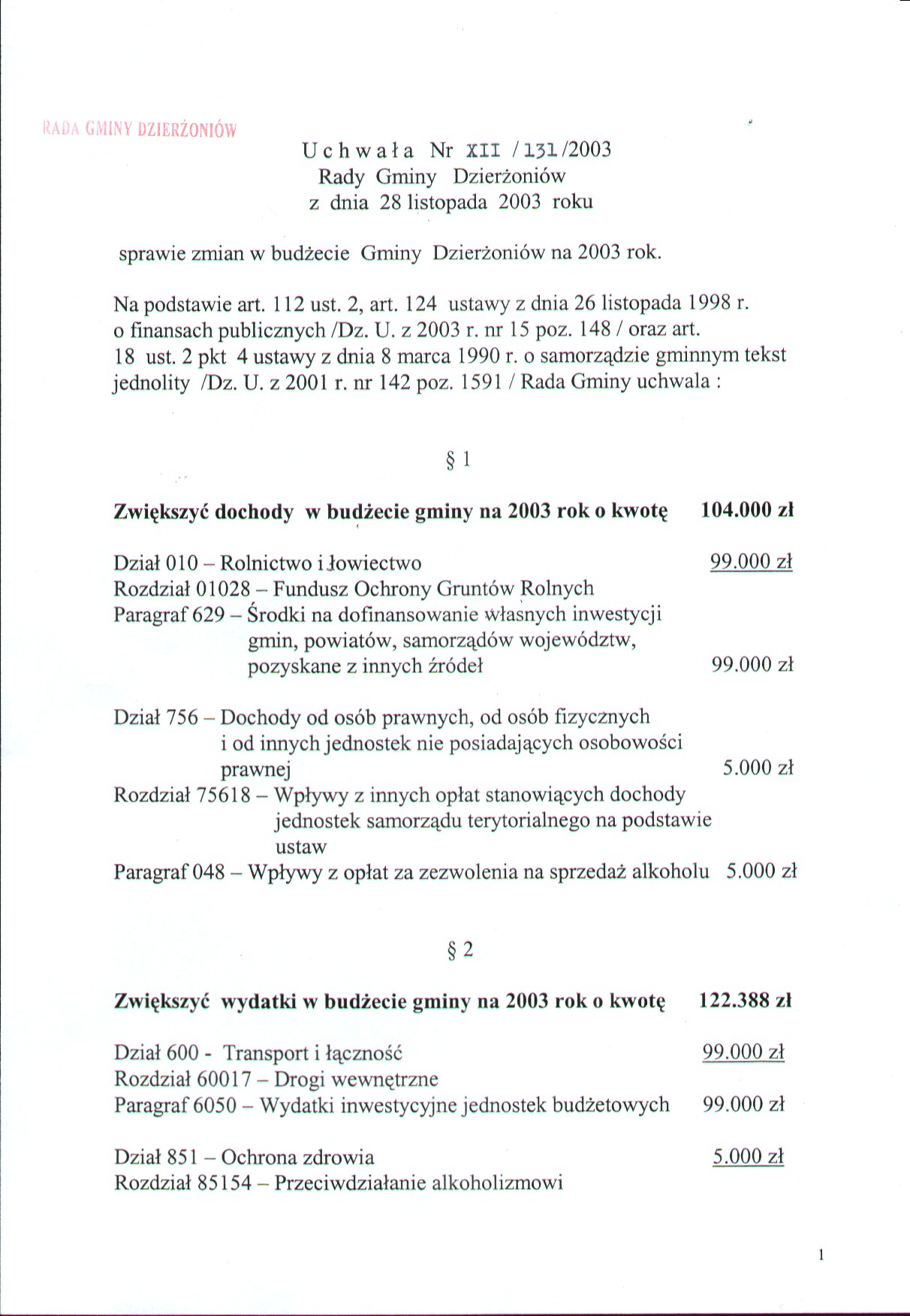Uchwała Nr XII/131/2003 w sprawie zmian w budżecie Gminy Dzierżoniów na 2003 rok