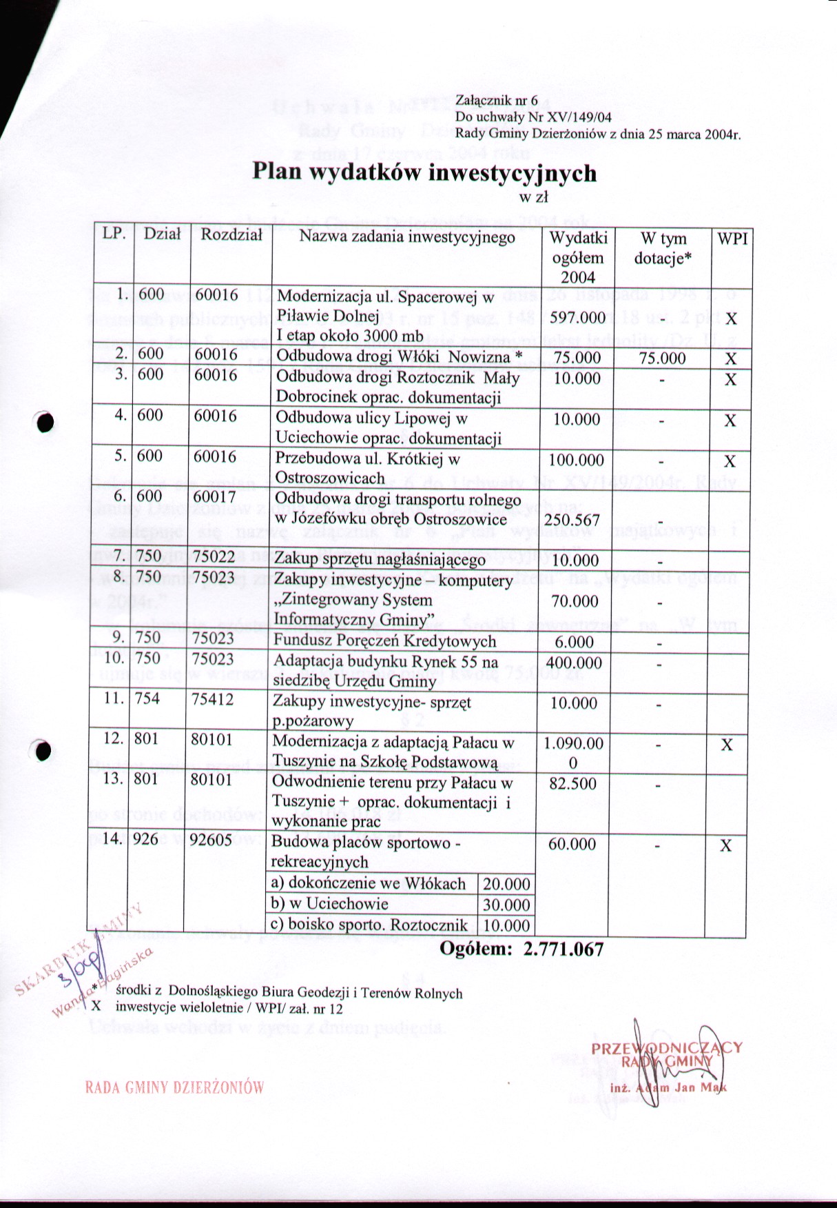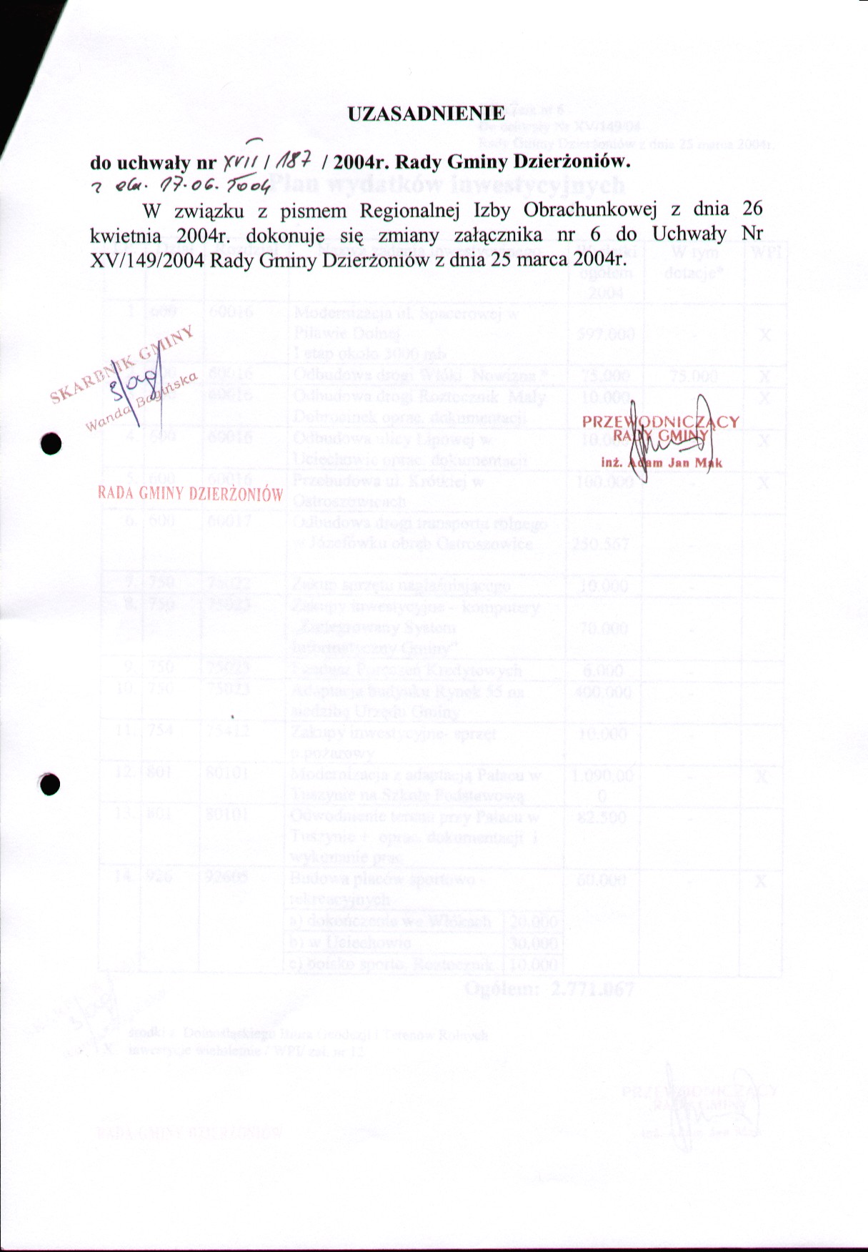Uchwała nr XVII/187/04 w sprawie zmian w budżecie Gminy Dzierżoniów na 2004 rok